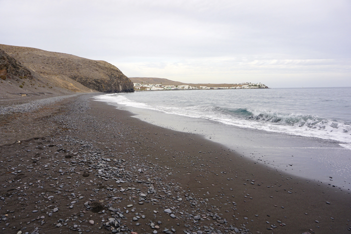 Playa Quemada. El Pozo. Conviene aprovechar esta zona de calas espectaculares, porque permanecen todavía al margen del conocimiento de las multitudes. Silencio sepulcral, arenas negras rodeadas de acantilados, todo se suma para configurar un remedio natural contra el estrés.
