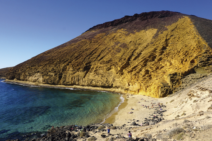 Playa de la Francesa con la montaña «amarilla» en La Graciosa