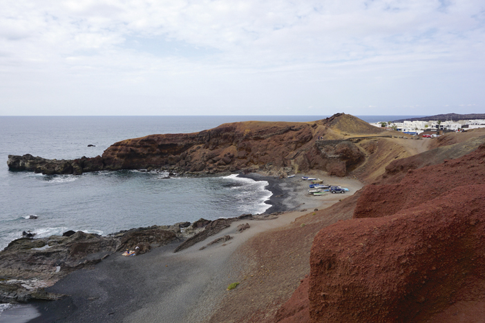 Playas de arena negra junto a El Golfo, pueblecito de restaurantes