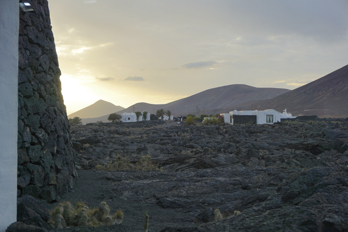 Se ubica entre dos accidentes geológicos especialmente significativos: de una parte, el impresionante Risco de Famara y, de otra, el Volcán de la Corona, hacia el cual se extienden los brazos de la gran plaza semicircular que da entrada a la edificación.El Risco de Famara es un extenso acantilado que se desarrolla longitudinalmente a lo largo de 22 kilómetros desde Punta Fariones, el extremo más al norte de la isla, hasta el Morro del Hueso, en las inmediaciones de Teguise. A largo de su orografía se alcanza el punto de mayor altitud de la isla, las Peñas del Chache, de 671 metros de altitud.          El trazado vertical del Risco discurre casi en paralelo a la costa de La Graciosa, de la que la separa un estrecho brazo de mar, denominado El Río. De gran interés medioambiental, el Risco de Famara, La Graciosa y los islotes próximos a ella, incluidos los fondos marinos, forman una unidad declarada Parque natural del Archipiélago Chinijo.