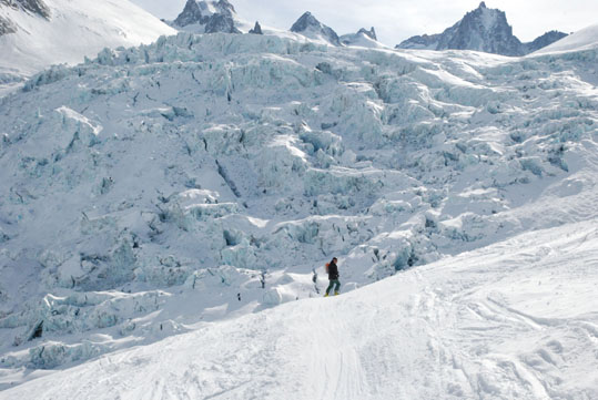 Aquella primera visión del helero dista mucho de la actual. En el emplazamiento de la estación, los bloques de hielo afloran enormes como olas fijadas en un “mar de hielo” (Mer de Glace). Este nevero, anteriormente “maldito”, se ha convertido en uno de los espectáculos de la naturaleza más visitados de Chamonix. Se puede contemplar cómodamente desde su terraza panorámica, visitando la cueva de hielo o escalando y esquiando por la famosa bajada del Vallé Blanche (Valle Blanco). Este itinerario para esquiadores avanzados, ofrece 20 kilómetros de bajada inolvidable por el helero. Pero precaución, la alta montaña no permite ninguna imprudencia, es aconsejable la contratación de guías locales para el descenso y obligatorio el uso de arnés y crampones para descender la arista inicial de la bajada. Solo la subida en el funicular aéreo más alto del mundo (3.842 m), hasta el Aguille de Midi es toda un aventura.