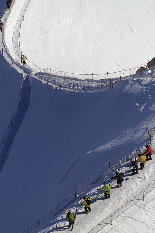 Esta pista-glaciar recibe una gran afluencia a comienzos de la primavera y no es un itinerario de montaña más. Se recomienda ir acompañado de un guía.