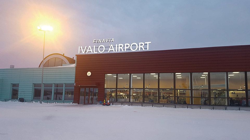 Sobrevolar y aterrizar en la inmensa llanura blanca de ese pequeño aeropuerto, resulta inquietante y enseguida percibimos lo esperado, una vasta tierra inhóspita. Una pequeña avioneta es el único aparato, además del nuestro en aquel desolado aeropuerto. Bajamos la escalinata y nos dirigimos a un pequeño edificio, al que caminamos sobre un pavimento de nieve y hielo,  “Ivalo Aeroport”. El atardecer nos hechiza. Hace bastante frío, aunque no es tan horrible como creíamos, si se va bien equipado.