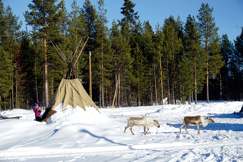 Más de 200.000 renos viven en Laponia y el pueblo sami ha obtenido de este animal todo lo necesario para vivir. Los renos campan en libertad desde en invierno hasta el verano, que los agrupan y pastorean. Por ello, es posible verlos dispersos al realizar alguna actividad. Durante la visita a la granja, les dimos de comer, lanzamos el lazo de caza al estilo lapón y manejamos un trineo de renos.
