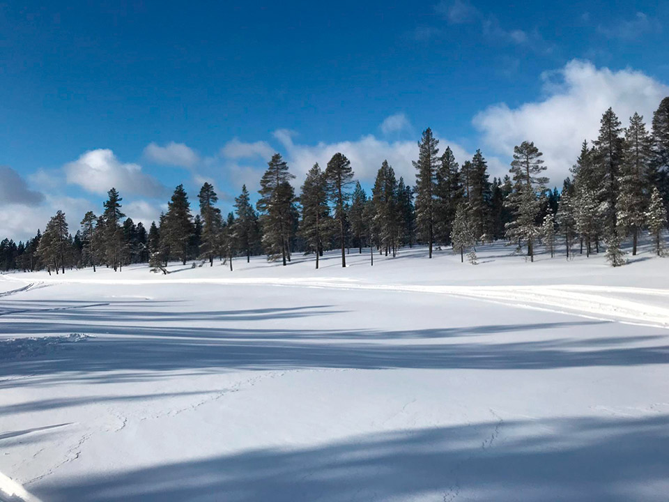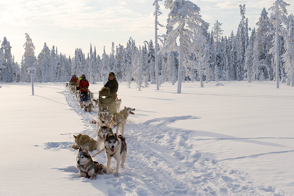 El itinerario lleva a Kaunispää, una colina sobre el pueblo de Saariselkä, de fácil acceso que se encuentra a unos 400m sobre el nivel del mar. El mirador ofrece unas magníficas vistas de la Reserva Natural de Sompio, el Parque Nacional Urho Kekkonen y el área de Hammastunturi. Tras un reconfortante menú caliente a base de carne de reno y sopa de salmón, visitamos las calles de Saariselkä, abarrotadas de nieve. Encontramos un ambiente animado y una amplia oferta de alojamientos y ocio. No es para menos, puesto que las colinas que nos rodean, ofrecen un paisaje ártico incomparable, bosques y lagos helados, idóneos para realizar todo tipo de aventuras.