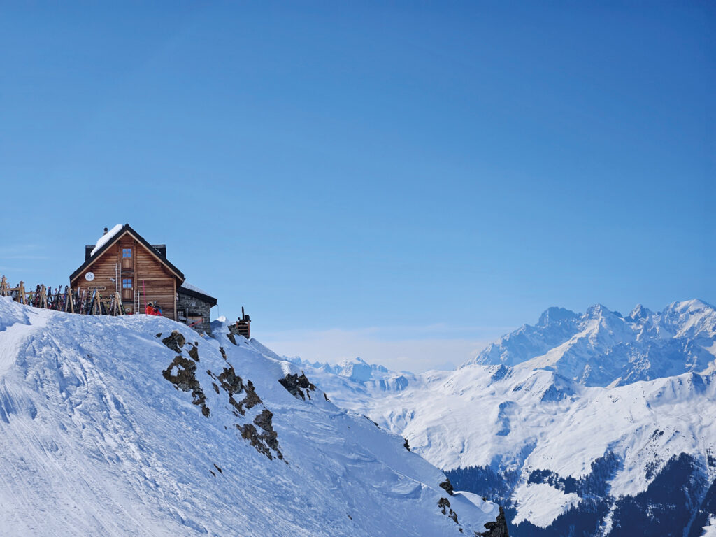 La Cabane du Mont-Fort es uno de los refugios más emblemáticos de Verbier, situada a 2. 457 metros de altitud. Fusiona el encanto de un albergue de montaña con un restaurante tradicional que sirve fondues, sopas y platos suizos, todo con vistas majestuosas al Mont Blanc y al Grand Combin.