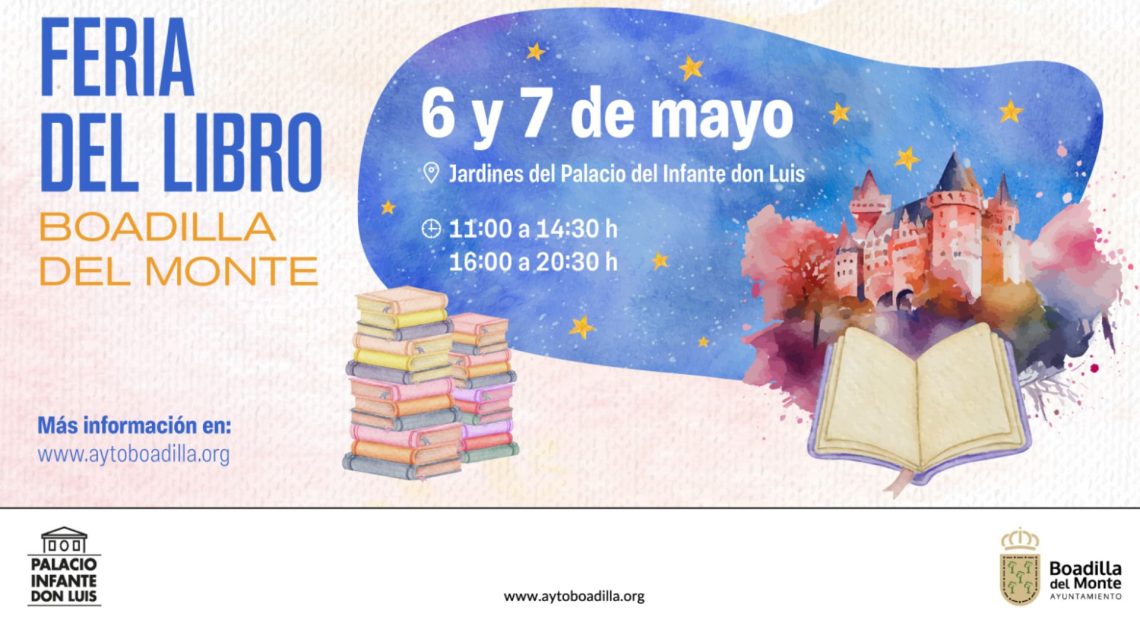Ya conocemos la fecha de la Feria del Libro de Boadilla del Monte. El 6 y 7 de mayo los jardines del Palacio del Infante D. Luis acogerán las 30 casetas que participarán en esta edición. El horario de apertura será de 10:30 a 14:30 y de 16:00 a 20:30 horas.
